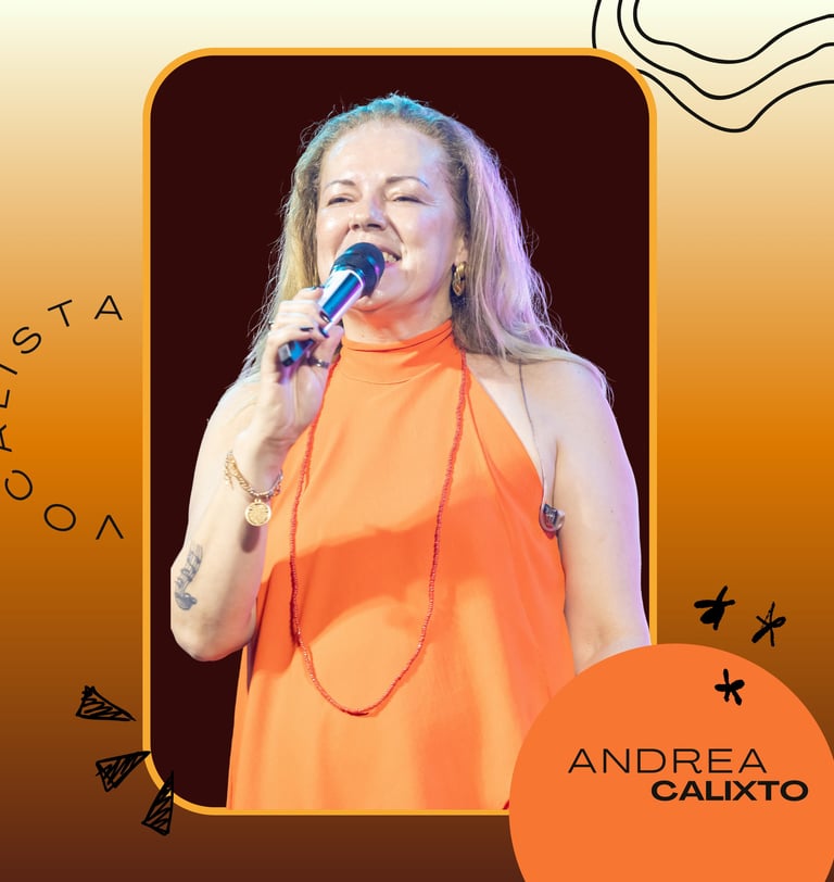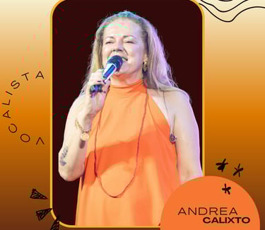 Com timbre marcante e presença cativante, Andrea não apenas canta: ela transmite sentimentos, conecta pessoas e transforma cada canção em experiência única. Sua voz é instrumento de expressão e identidade, tornando-se o coração pulsante das apresentações. Ao longo de décadas de dedicação, consolidou-se como referência, sempre guiada pela paixão e pelo respeito à música brasileira.